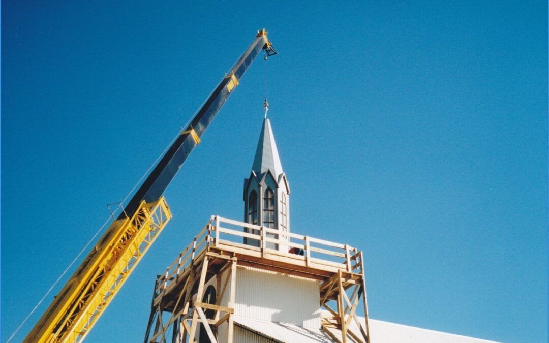 Árið er 2001. Í upphafi ársins var Trésmiðjan Akur fengin til að meta ástand turnsins á Akraneskirkju. Niðurstaðan var að endurbyggja þyrfti turninn frá grunni. Verkfræðistofan Hönnun á Akranesi var fengin til að gera byggingaruppdrætti og sjá um verkfræðilega hönnun. Turninn var byggður nákvæmlega eftir þeim gamla og kom Húsafriðunarnefnd ríkissins einnig að verkefninu. Smíði turnsins byrjaði á vormánuðum 2002 og lauk í júní sama ár. Smíðin fór fram innandyra á verkstæði Akurs og var turninn síðan fluttur og hífður á sinn stað af Skóflunni á Akranesi.